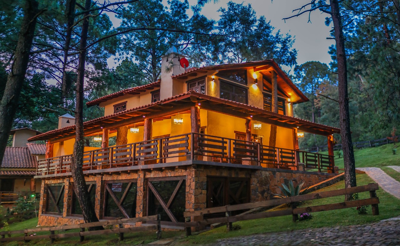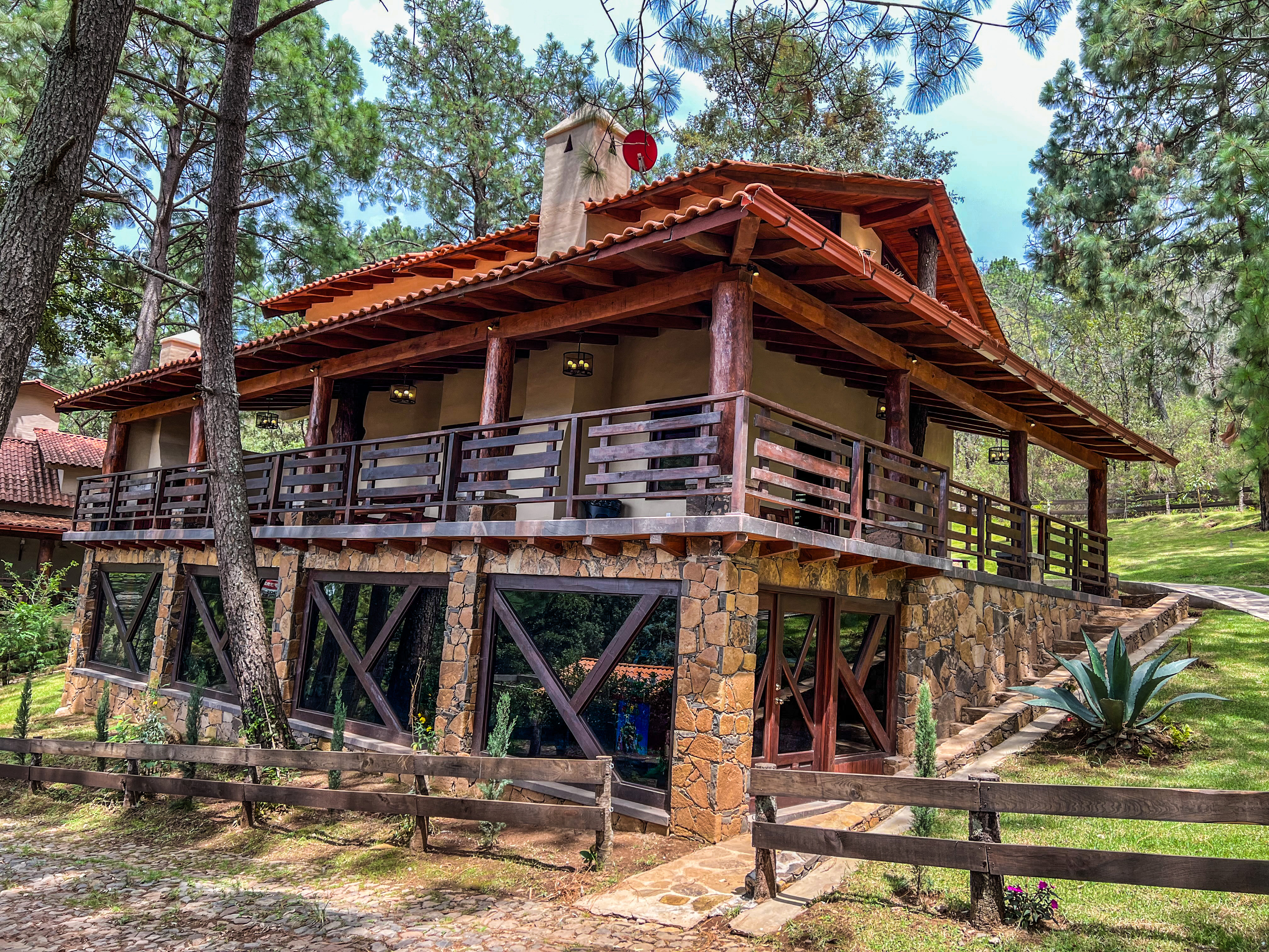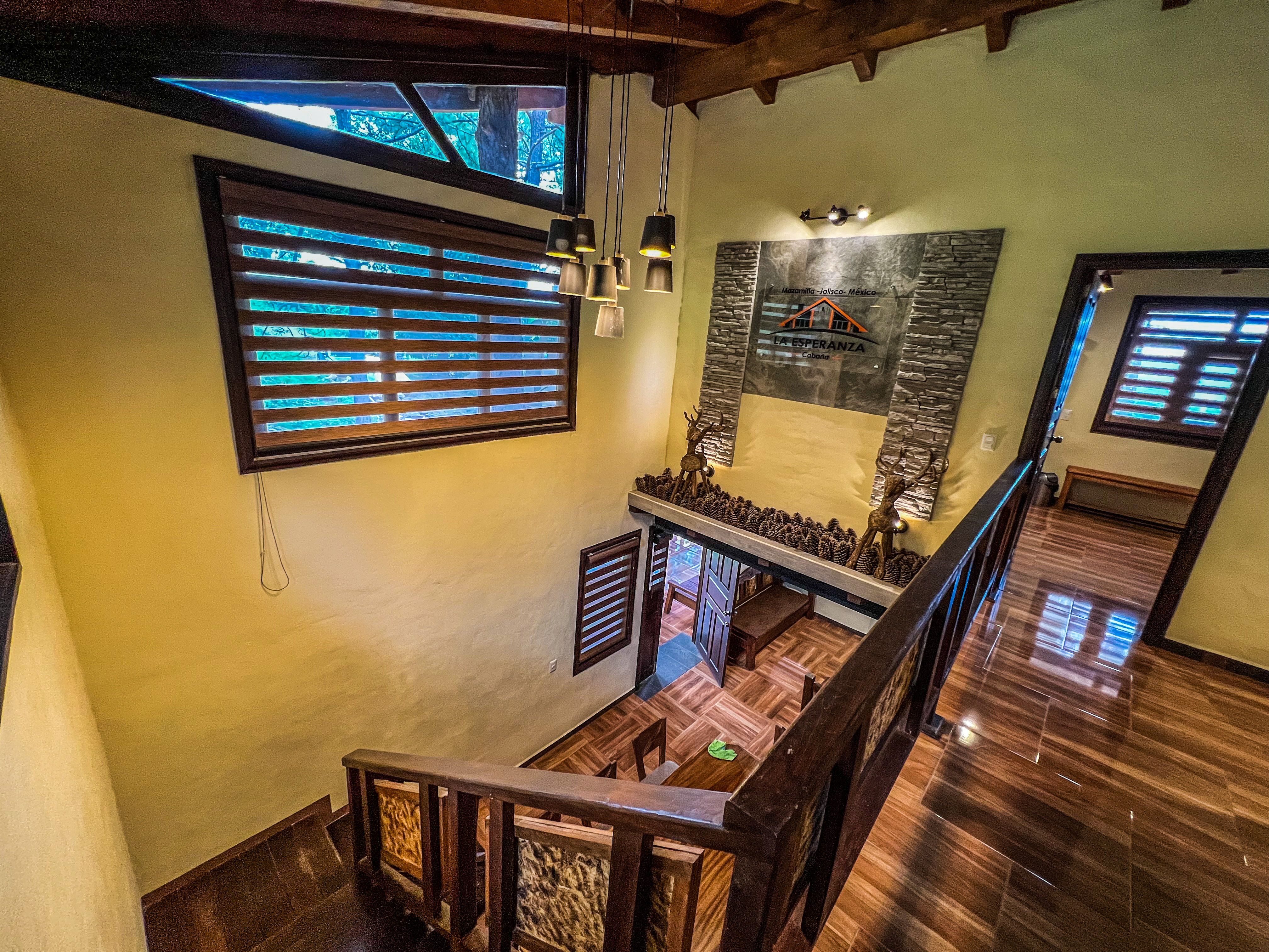 Cabaña La Esperanza es un refugio perfecto en el corazón del bosque de Mazamitla, un encantador pueblo mágico. Con capacidad para 20 personas, esta impresionante construcción de tres pisos combina piedra y madera para crear un ambiente cálido y acogedor. La cabaña cuenta con 5 habitaciones, 2 baños completos y un medio baño, ofreciendo comodidad para todos. Su amplia sala con chimenea y TV con cable es ideal para relajarse en compañía.