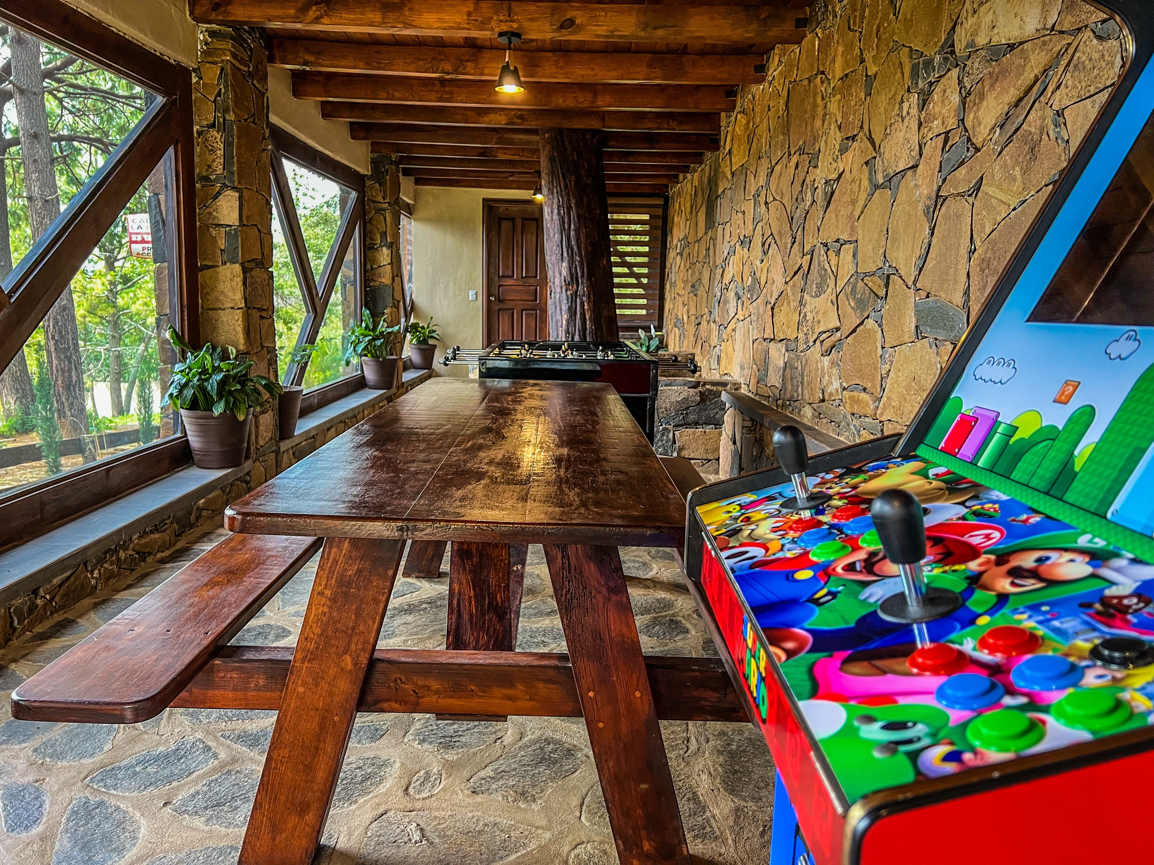 La cocina completamente equipada y la terraza con asador invitan a disfrutar deliciosas comidas al aire libre. Los espacios de entretenimiento incluyen un fogatero, área de juegos con columpios y una maquinita de videojuegos, asegurando diversión para todas las edades. La Esperanza es el lugar perfecto para desconectar y descansar al máximo en un entorno natural único, rodeado por la magia del bosque de Mazamitla.
