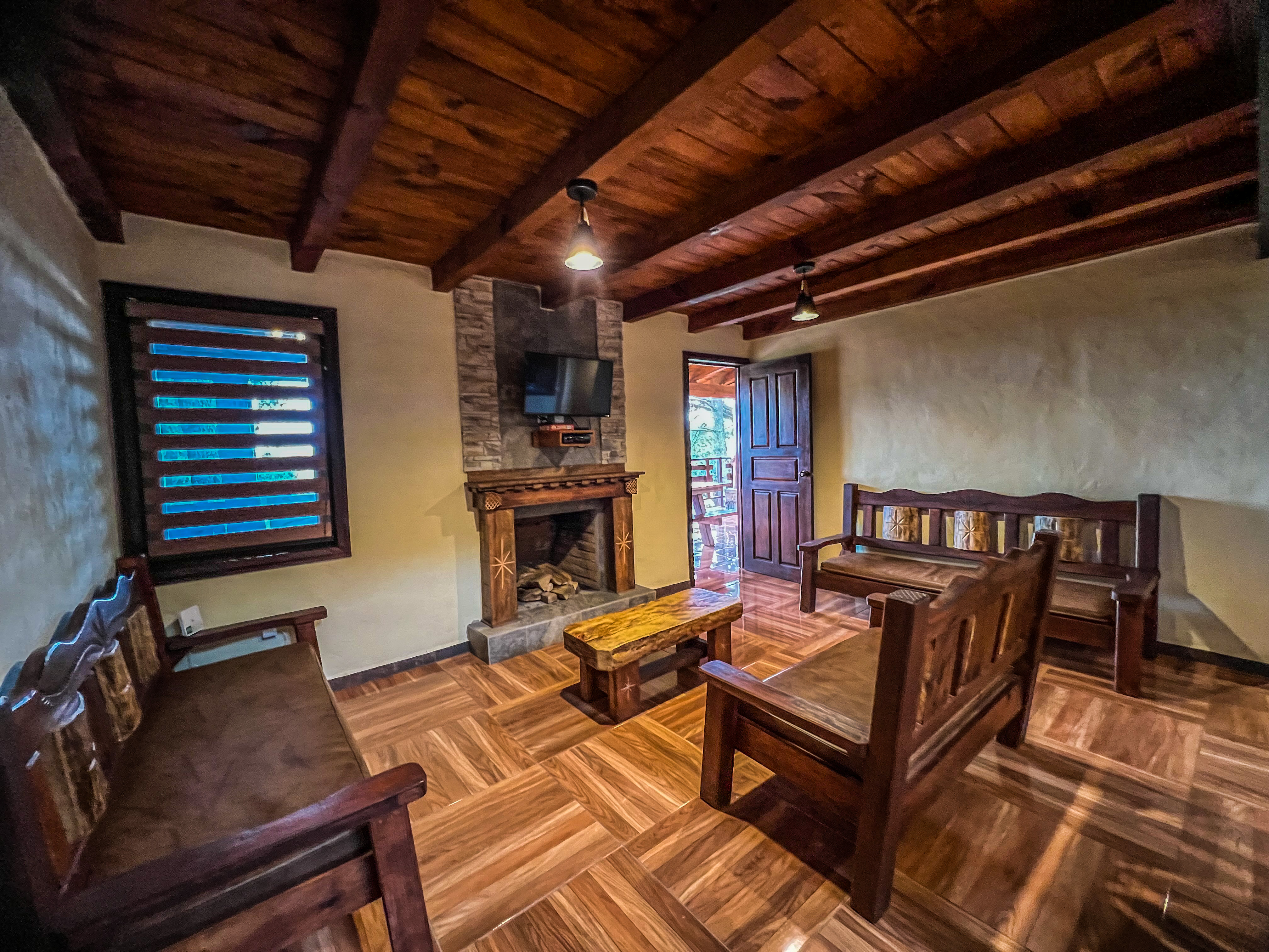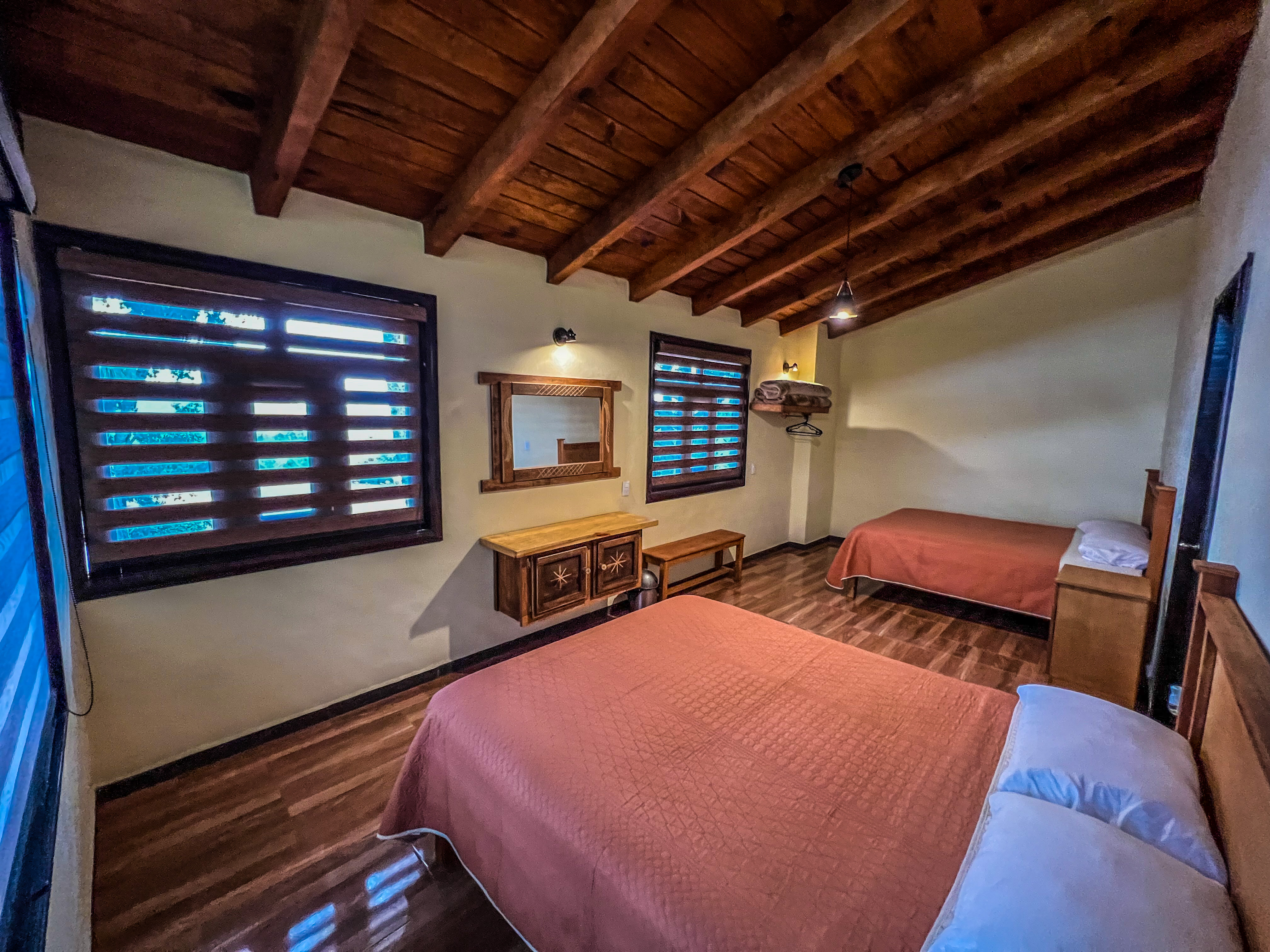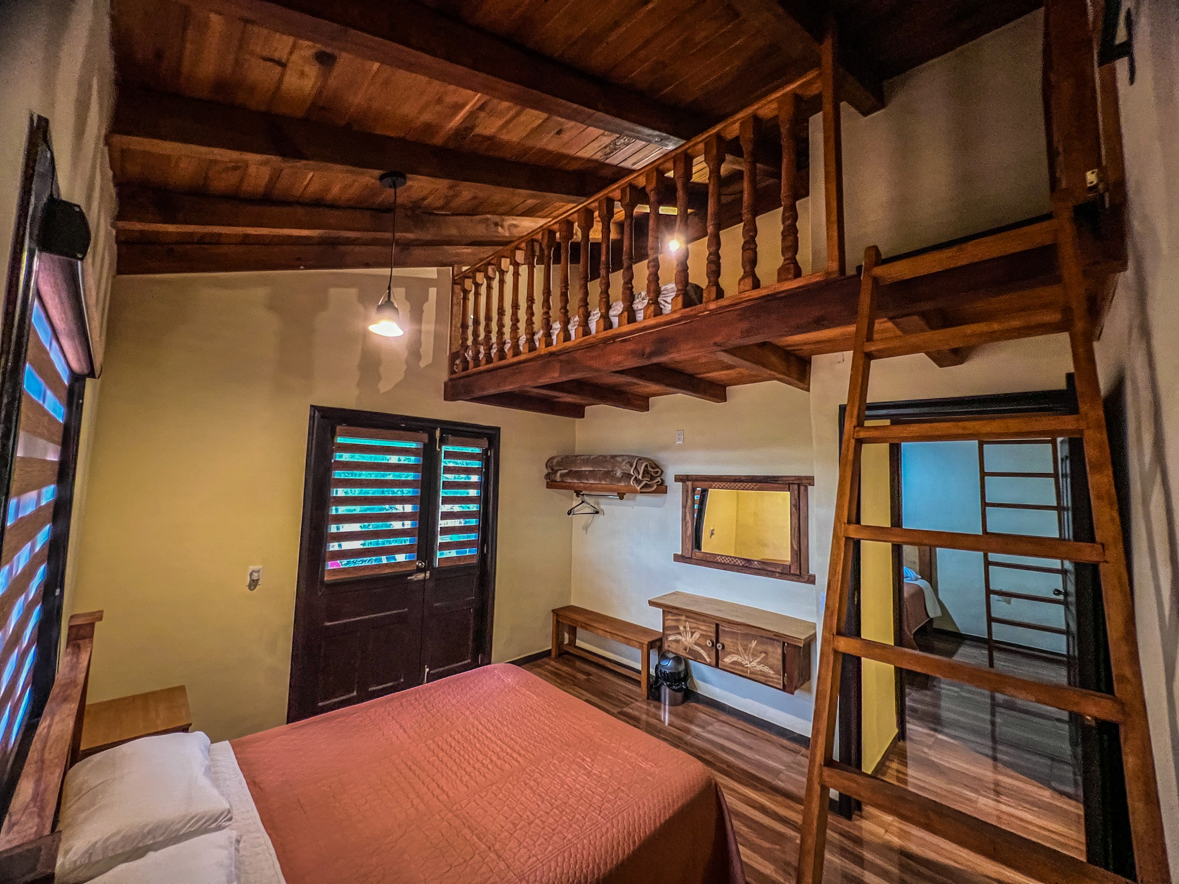 Las habitaciones de La Esperanza son amplias, con encantadores tapancos y balcones que ofrecen vistas espectaculares al bosque, creando un ambiente acogedor y lleno de tranquilidad.
